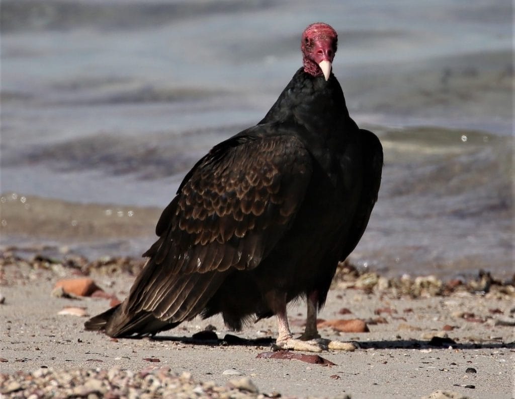 Turkey Buzzard Vulture. One of the best ways to start learning raptors in flight is to first peg identification of this species. It has dark plumage, a whitish beak, white legs, and a bare red head that is covered with whitish bumps. but if it's soaring with its wings raised in a v and making wobbly circles, it's likely a turkey vulture. Its wings measure 1.8 metres (6 feet) across, and it feeds primarily on carrion. Most birds are believed to have a very poor sense of smell, but the turkey vulture is an exception, apparently able to find carrion by odor. the most widespread vulture in north america, the turkey vulture is locally called “buzzard” in many areas. It occurs throughout the americas except northern canada. if you’ve gone looking for raptors on a clear day, your heart has probably leaped at the sight of a large, soaring bird in the. the turkey vulture is north america's most frequently seen soaring bird.